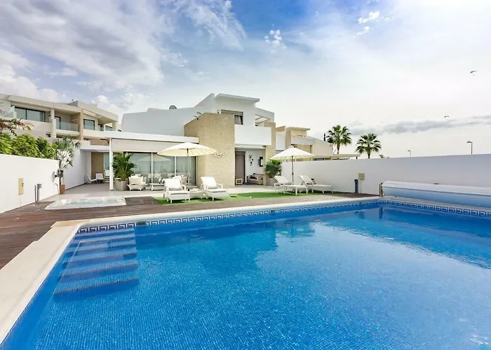 Villa White Whale jest położona zaledwie 1 km od Playa Diego Hernandez i oferuje prywatny basen kąpielowy. Willa oferuje parking oraz taras z widokiem na morze.